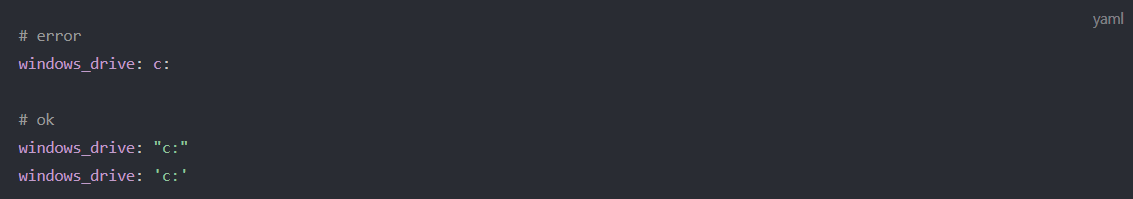 대부분의 문자열을 따옴표 없이 사용할 수 있지만 :가 들어간 경우는 반드시 따옴표가 필요합니다.