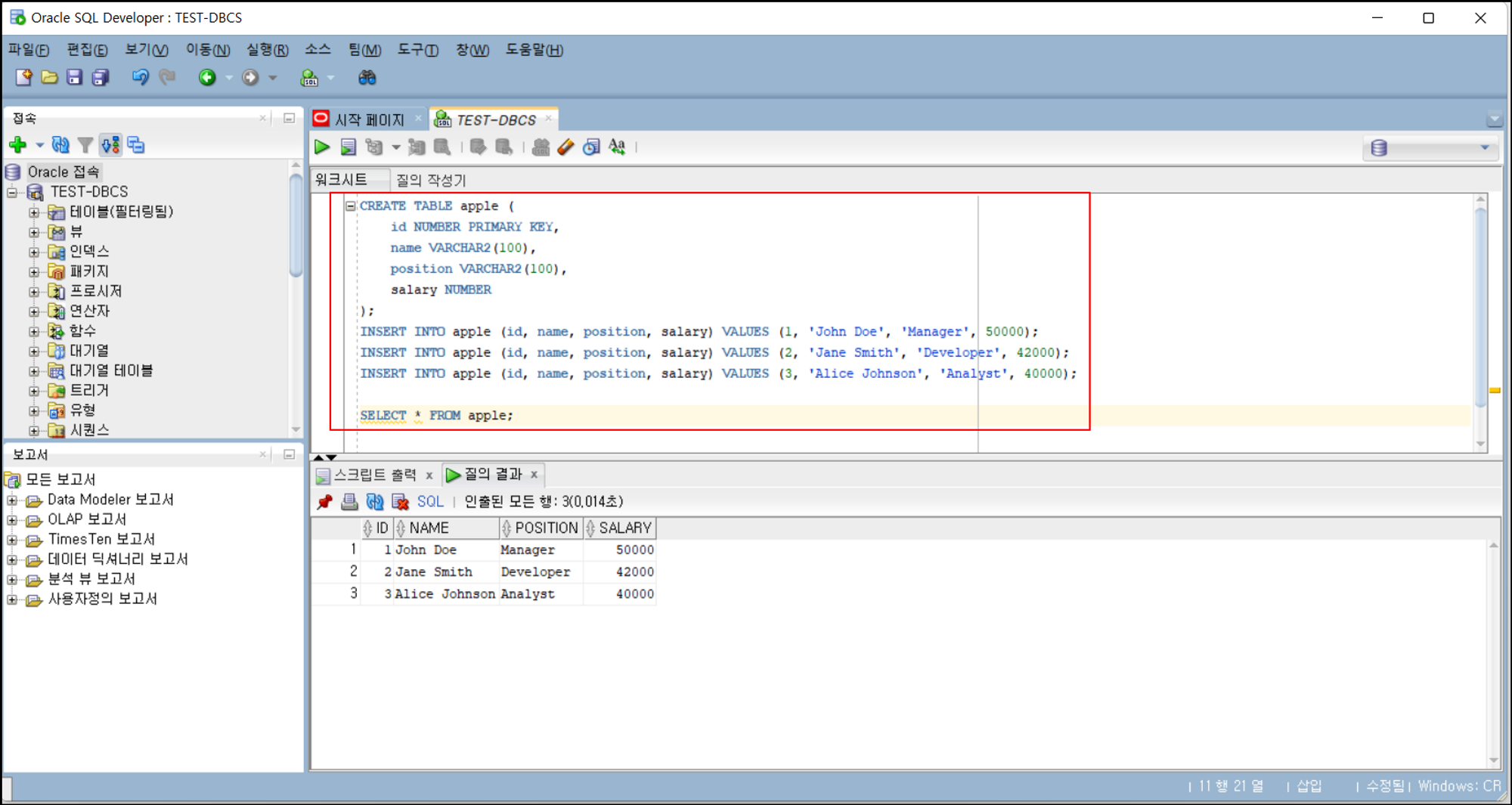 DB에 테스트 값 넣기
