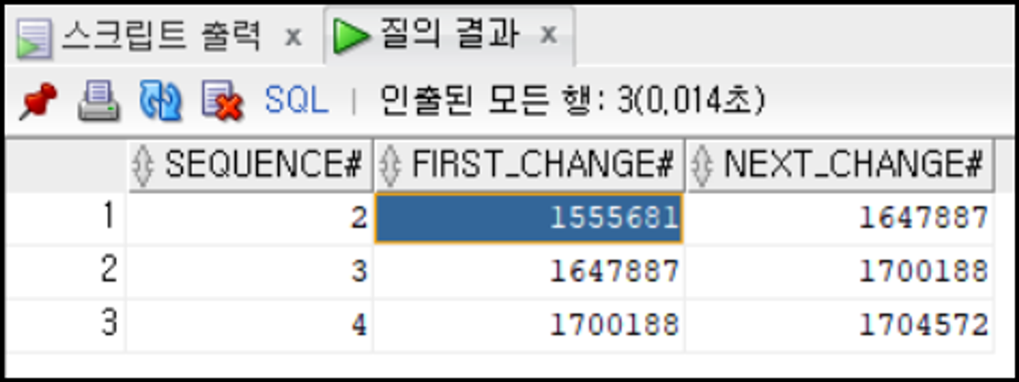 SELECT SEQUENCE#, FIRST_CHANGE#, NEXT_CHANGE#