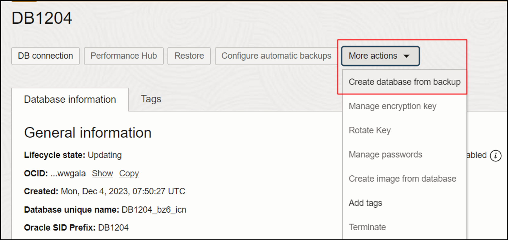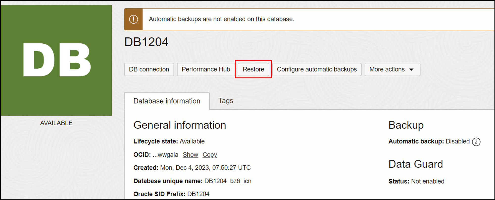 DB Backup 수동 생성