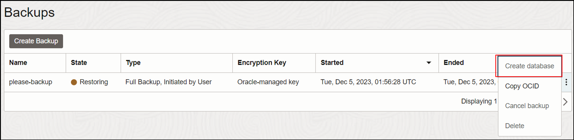 Full Backup : 수동 생성 시 full backup으로 진행된다.