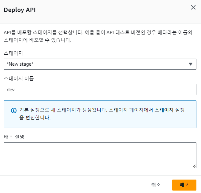 - 스테이지 이름 : dev