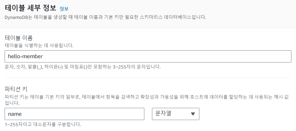 파티션 키의 이름은 반드시 똑같이 작성해야 에러가 나지 않습니다.