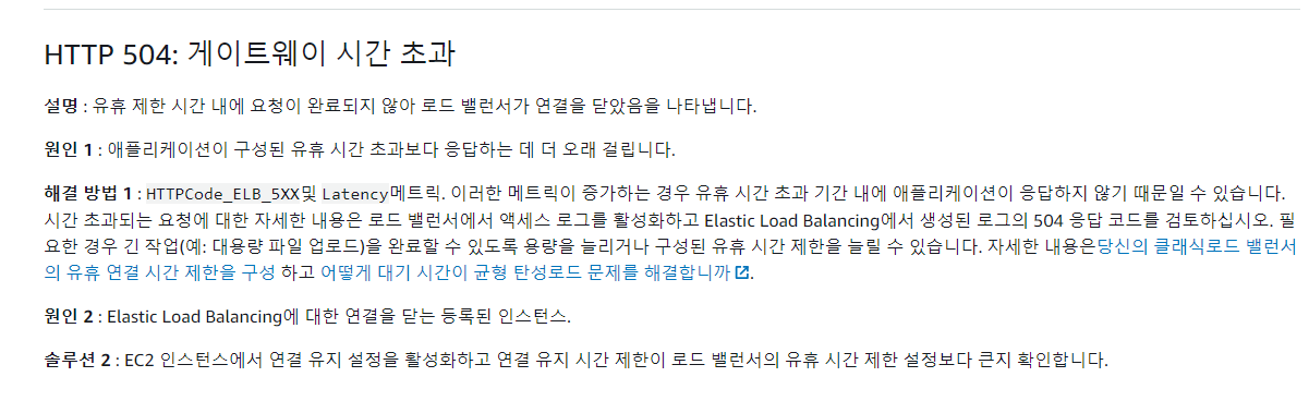 이렇게 이ELB에서 발생하는 간헐적 504 에러에 대한 해결방안에 대해 알아봤습니다.