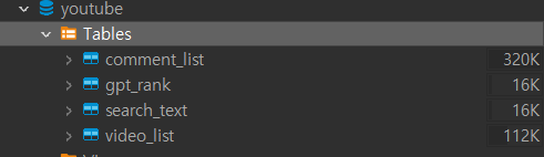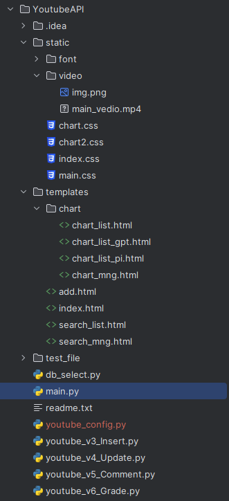 youtube_config : API Key, DB 계정 정보가 포함된 파일