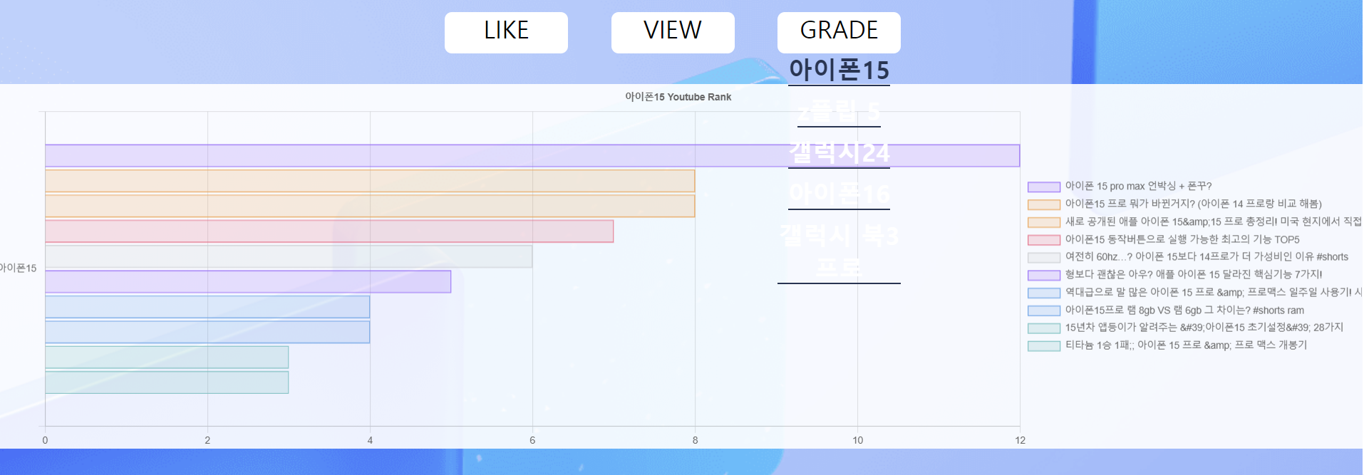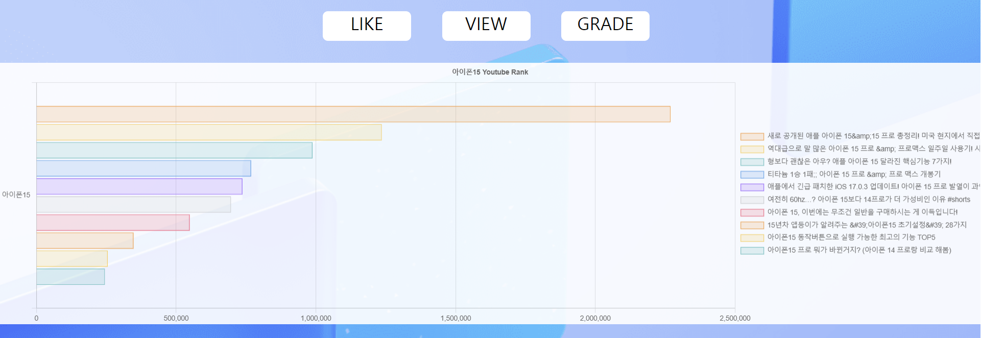 Like = 특정 키워드에 대한 동영상의 좋아요 순위
