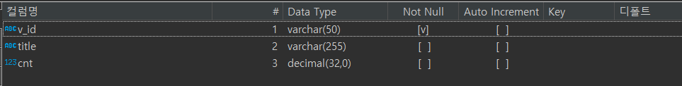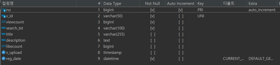 다음은 DB 테이블 정보 입니다.