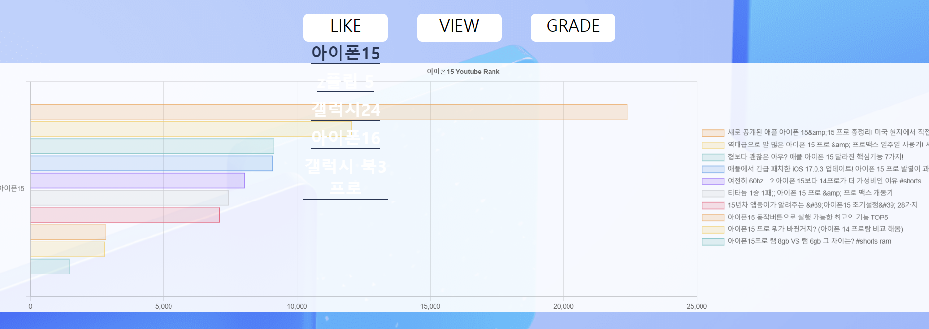 아이폰15에 대한 조회수 상위 영상