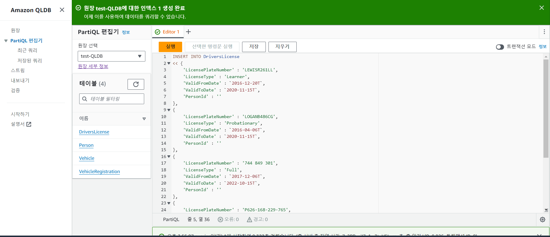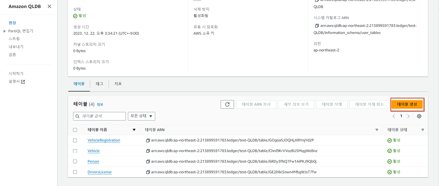 QLDB 생성 및 사용