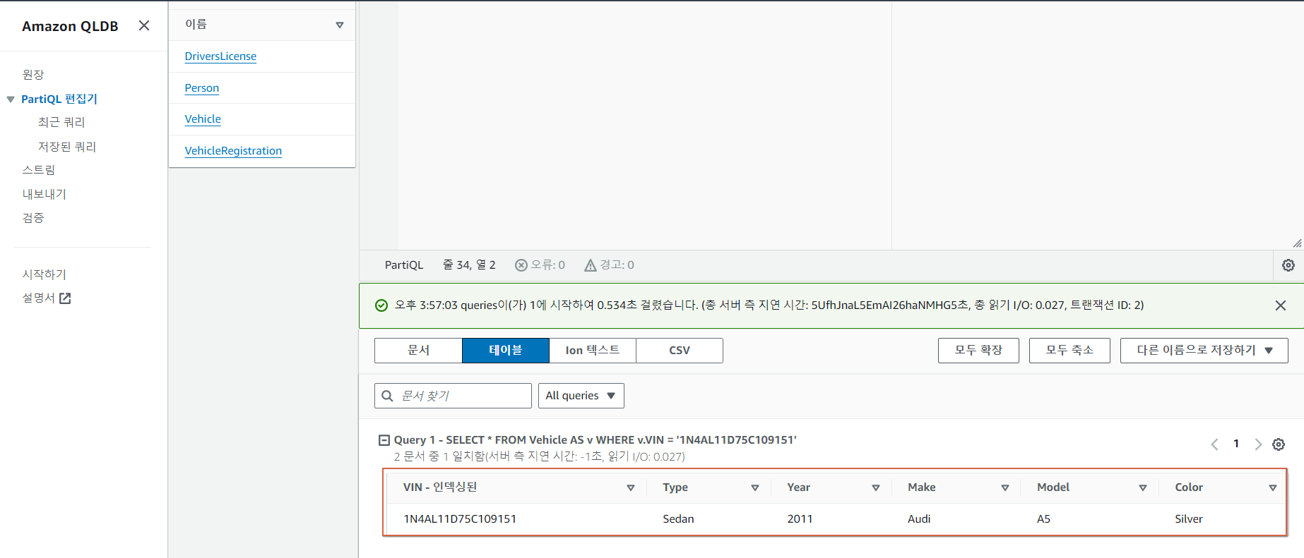 PartiQL 편집기를 통한 쿼리 후 데이터 확인
