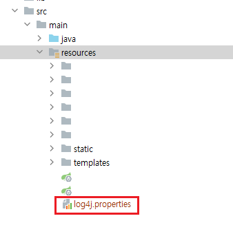 src/main/resource 디렉터리 안에 "log4j.properties" 파일을 추가합니다.