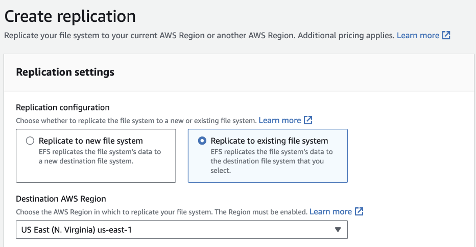 복제 페일백 기능을 활성화 하면 AWS의 또 다른 리전에서 파일 시스템의 복제본을 생성할 수 있게 됩니다.