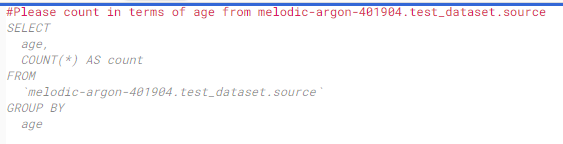 다음은 조금 더 심화해서 Duet AI를 사용하여 Bigquery 쿼리 작성에 도움을 받아보도록 하겠습니다!!