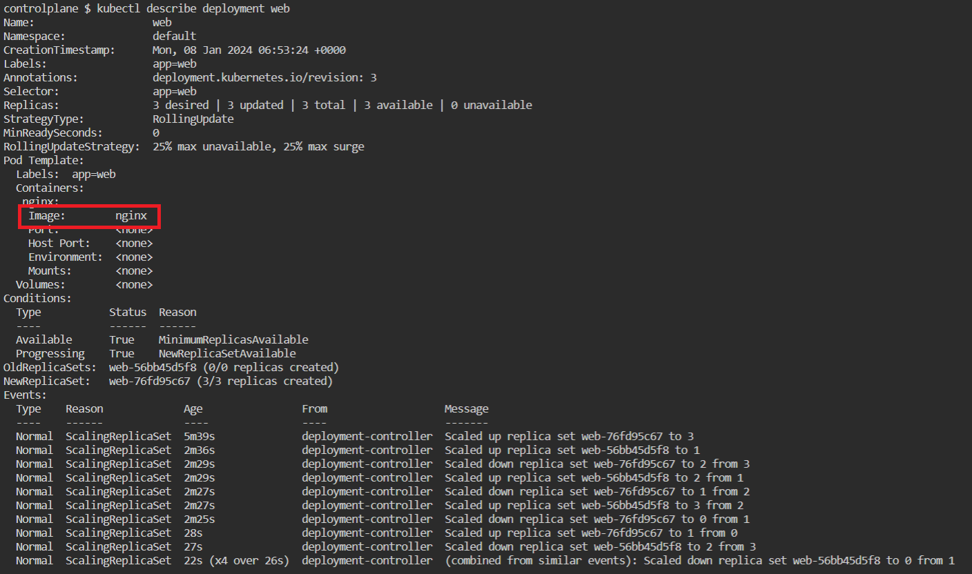 kubectl describe deployment web