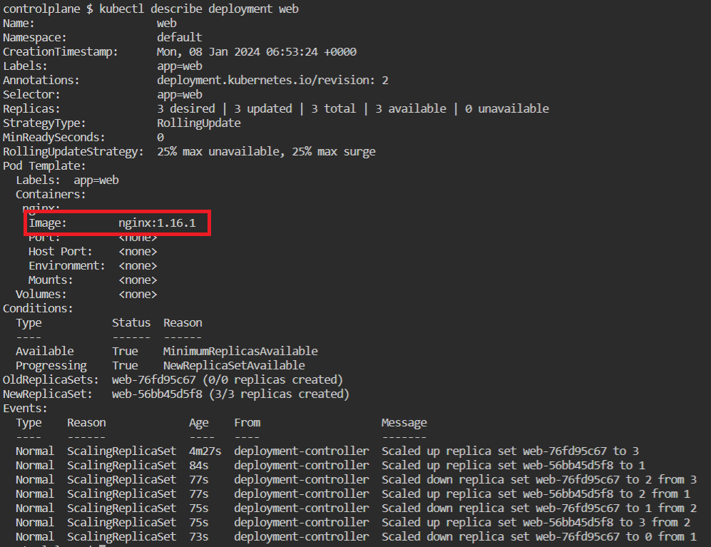 kubectl set image deployment web nginx=nginx:1.16.1