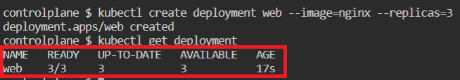 kubectl create deployment web --image=nginx --replicas=3