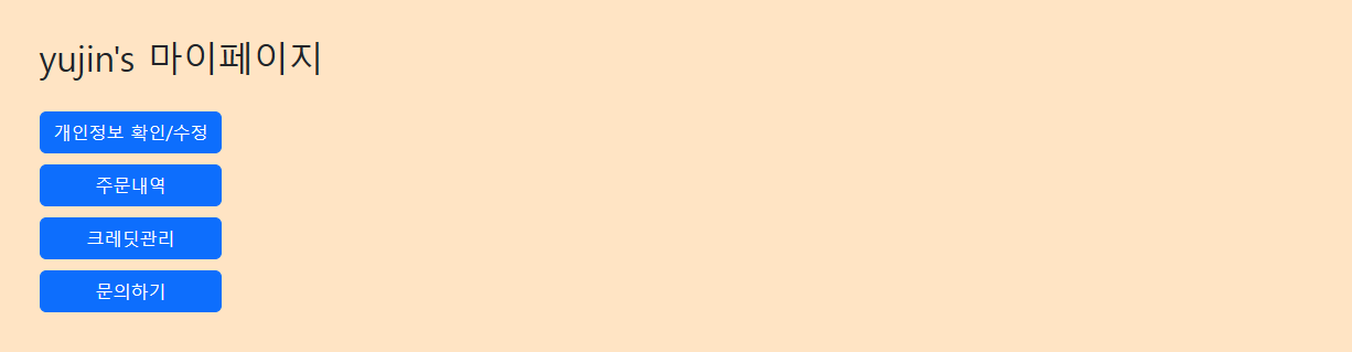 마이페이지에서 왼쪽에 버튼을 누르면 오른쪽에 버튼마다 다른 페이지가 호출 되어야 겠죠?