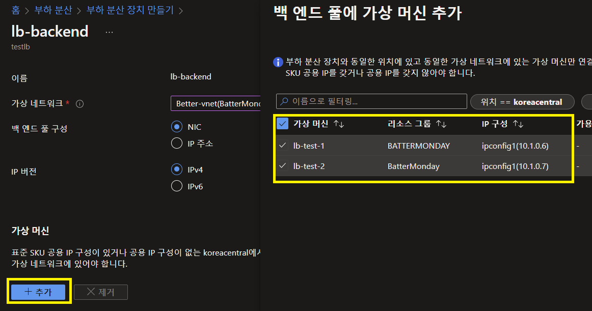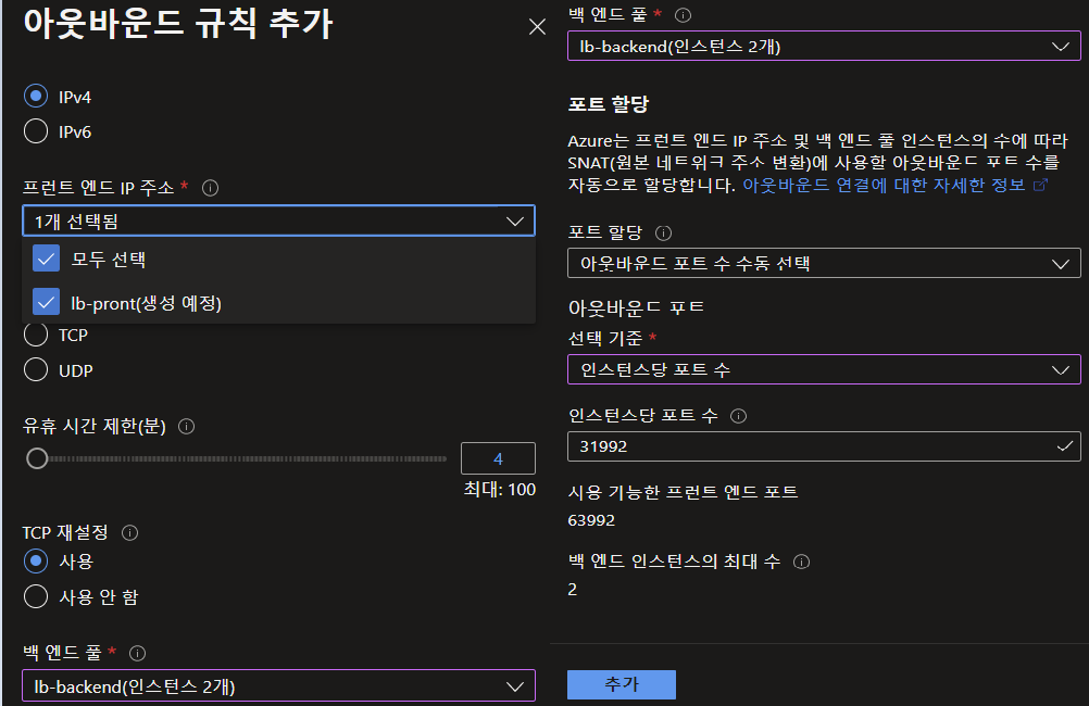 공용IP설정을 마치고 백앤드풀 설정으로 돌아와 백앤드풀 추가를 눌러줍니다.