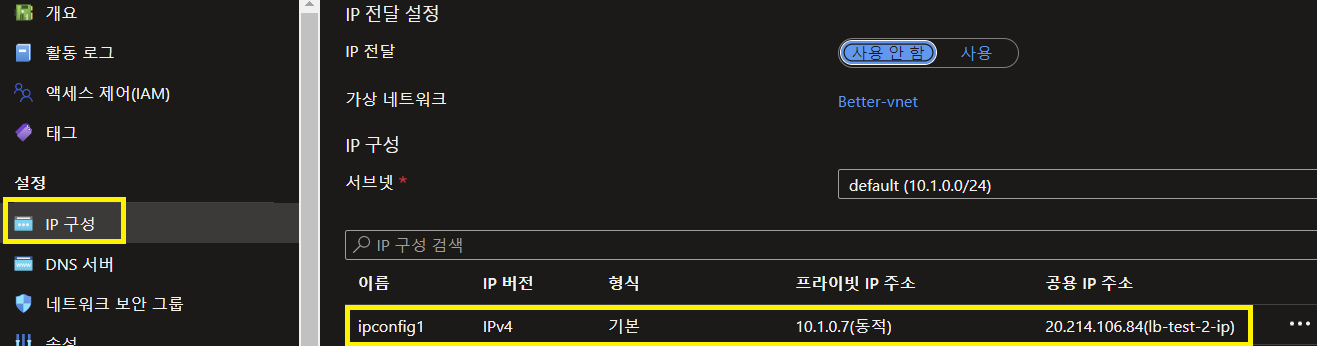 따라서 아까 테스트를 위해 지정해주었던 공용 IP를 해제 해주겠습니다.