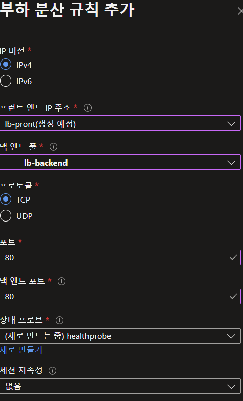 인바운드 규칙탭으로 넘어와 부하분산 규칙 추가 를 눌러준 후 다음과 같이 설정합니다.