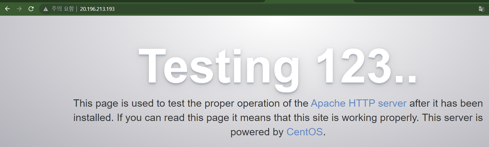 ※연결이 안될 시 VM-네트워킹-인바운드 규칙에서 80포트를 추가해주세요