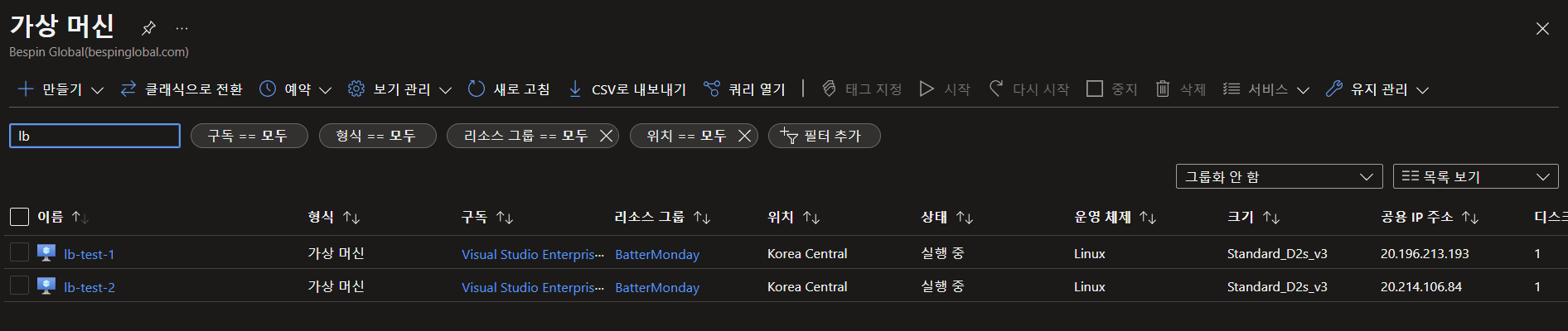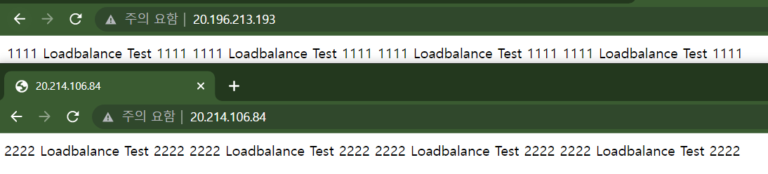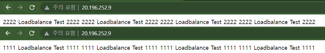 만들어진 LB의 프런트엔드IP를 주소창에 입력하고 새로고침(F5)를 누릅니다.