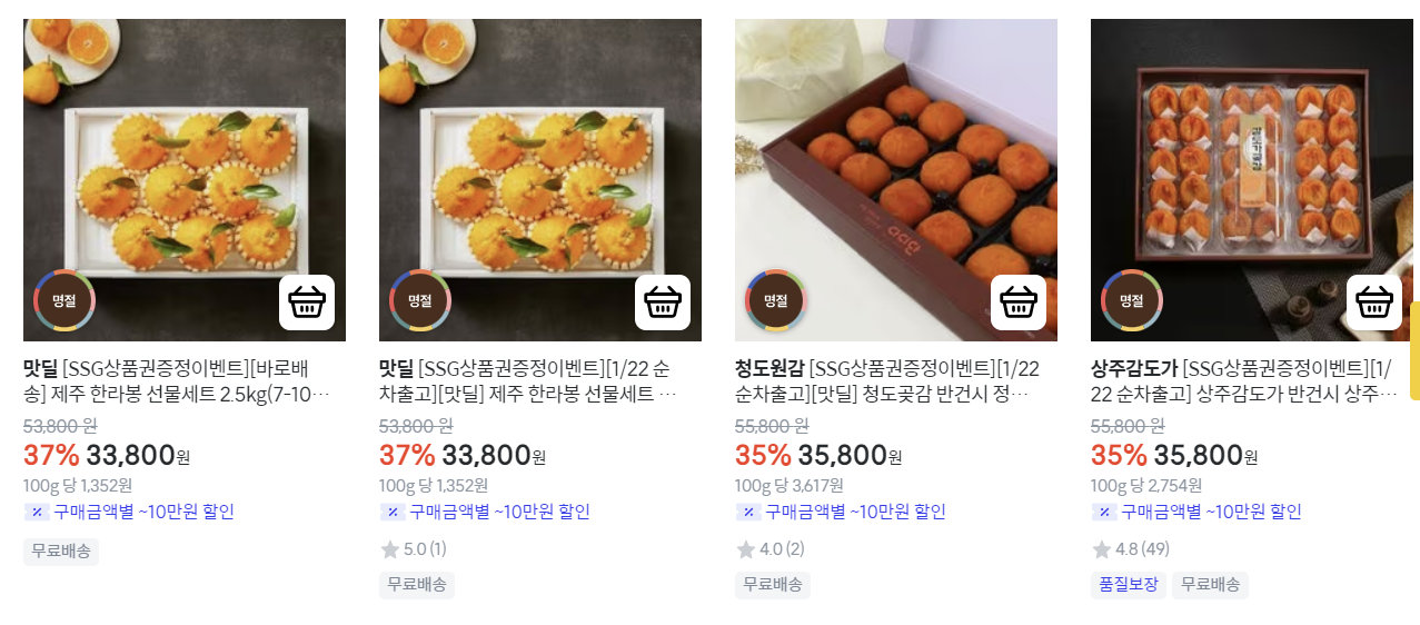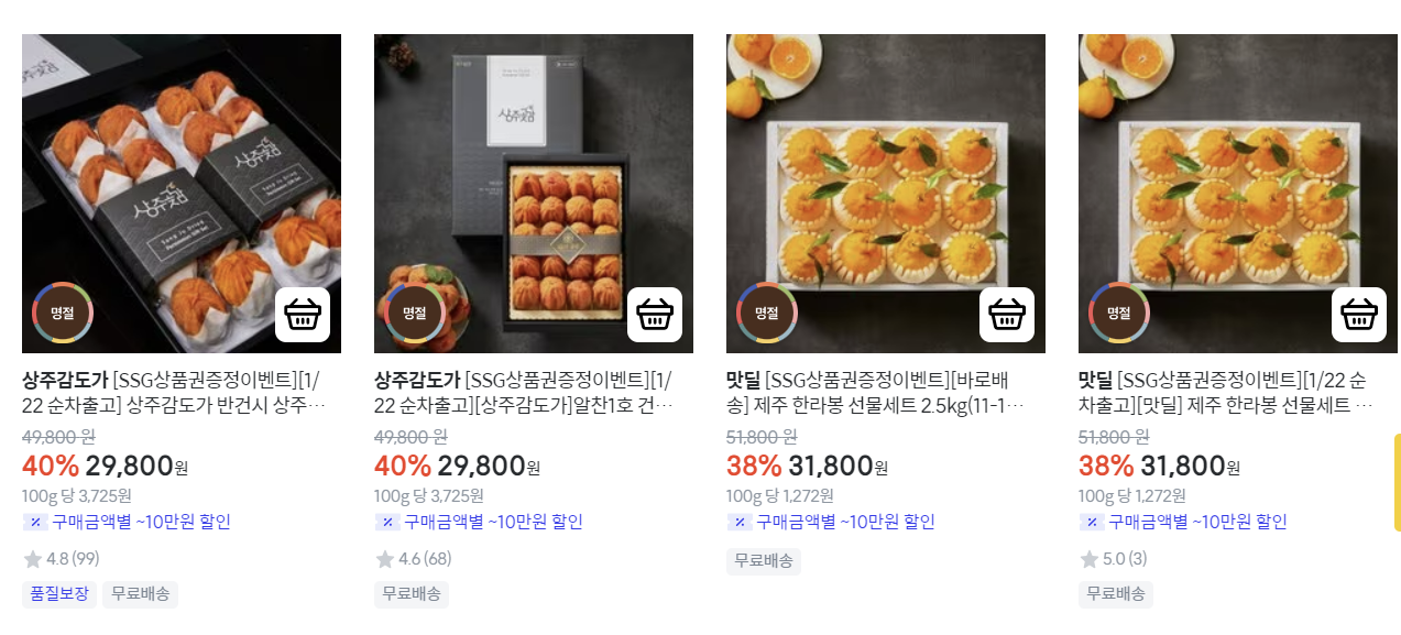 이마트 사이트의 과일 상품들의 목록입니다.