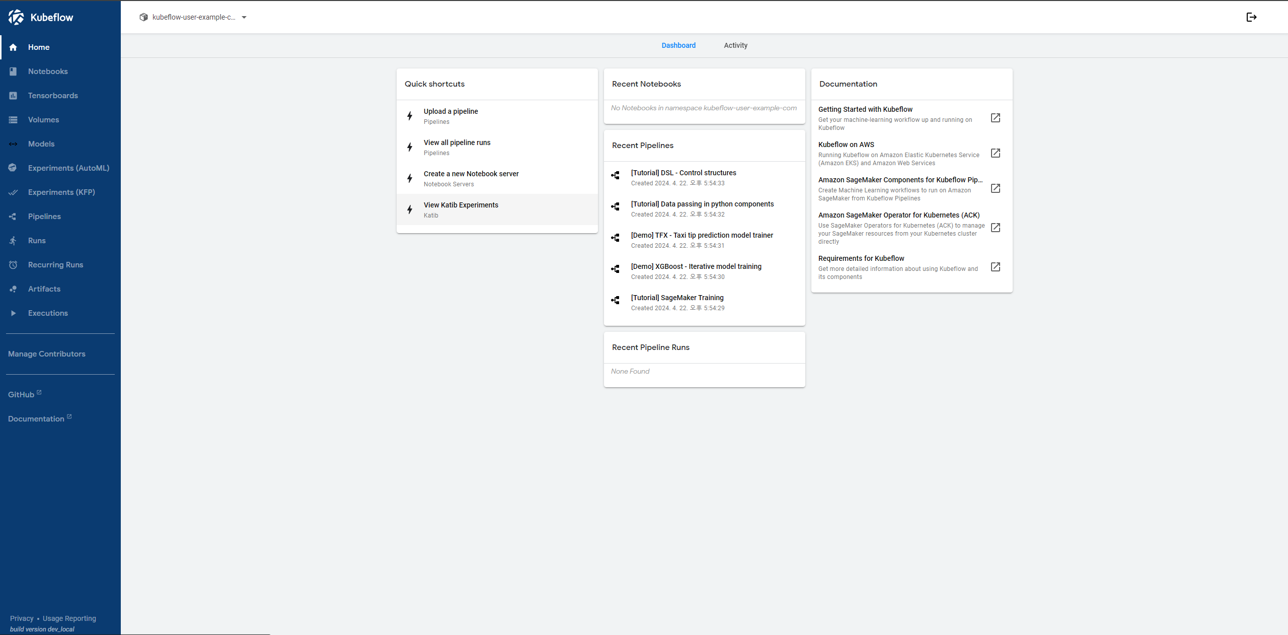 5. Coonect Kubeflow Dashboard