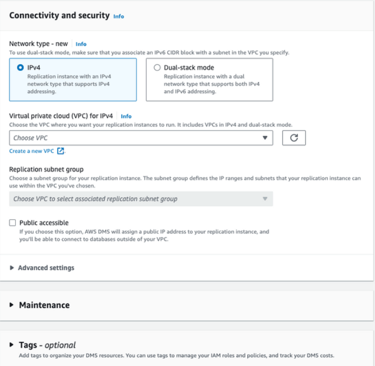 Instance class : 이관 작업을 진행할 인스턴스의 스펙입니다. 고스펙으로 빠르게 진행하는 것을 권장 합니다.