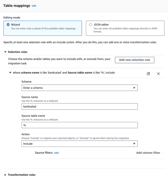 - DMS는 Auto Increment, FK 등의 제약조건은 자동으로 생성해주지 않기 때문에 Target 에도 Source 와 동일한 스키마 구조를 미리 생성해 두고 Do nothing 혹은 Truncate 사용을 권장