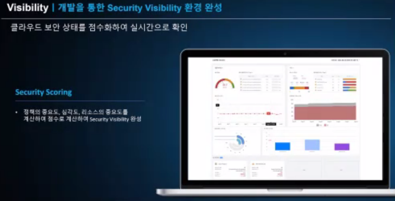 첫번째, 각 클라우드 환경에 흩어져있는 보안적 요소들을 하나의 보안 정책으로 관리할 수 있습니다. 이러한 보안 정책은 매일 업데이트 되며 각 기업마다 사용하는 서비스에 따라 커스터마이징 된 보안 정책을 사용할 수 있습니다.
