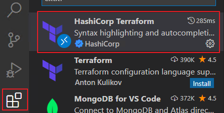 VScode의 확장에서 hashicorp terraform을 설치합니다!