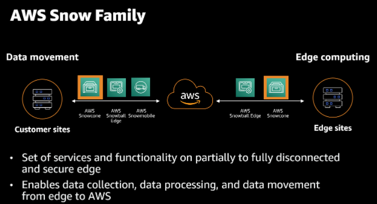 ● Data Migration을 위한 Snow 제품군으로는 Snowball Edge, Snowmobile, Snowcone 이 있습니다.