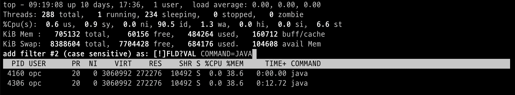 COMMAND에 JAVA가 포함되는 프로세스만 확인
