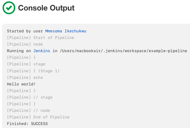 다음 출력은 파이프라인의 성공적인 실행을 보여줍니다.