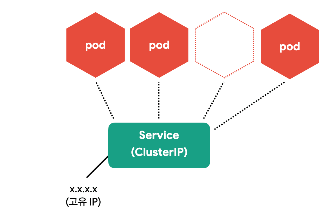 Pod은 자체 IP를 가지고 다른 Pod과 통신할 수 있지만, 쉽게 사라지고 생성되는 특징 때문에 직접 통신하는 방법은 권장하지 않습니다. 쿠버네티스는 Pod과 직접 통신하는 방법 대신, 별도의 고정된 IP를 가진 서비스를 만들고 그 서비스를 통해 Pod에 접근하는 방식을 사용합니다.
