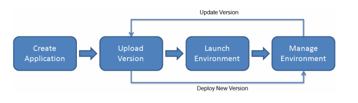 - Elastic Beanstalk을 사용하려면 애플리케이션을 생성하고, 애플리케이션 소스 번들의 형태(예: Java .war 파일)로 애플리케이션 버전을 Elastic Beanstalk에 업로드하고, 애플리케이션에 대한 몇 가지 정보를 제공합니다.
