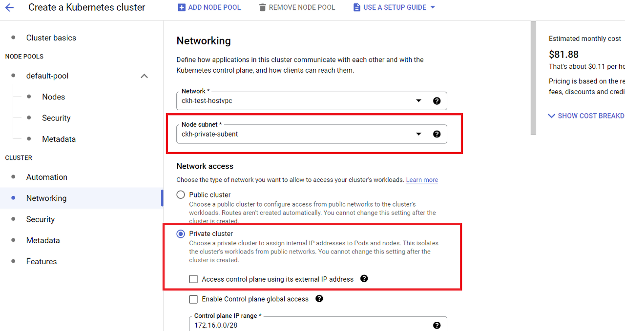* Private Cluster에선 보안을 위해 승인된 네트워크를 사용하도록 강력히 권고하고 있습니다.