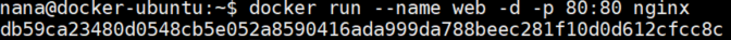 docker run --name web -d -p 80:80 nginx