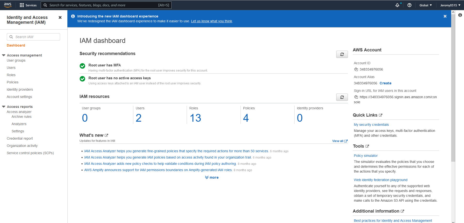- User : IAM을 통해 IAM User를 생성할 수 있습니다. Role과 Policy로 사용자의 권한을 조정할 수 있습니다.