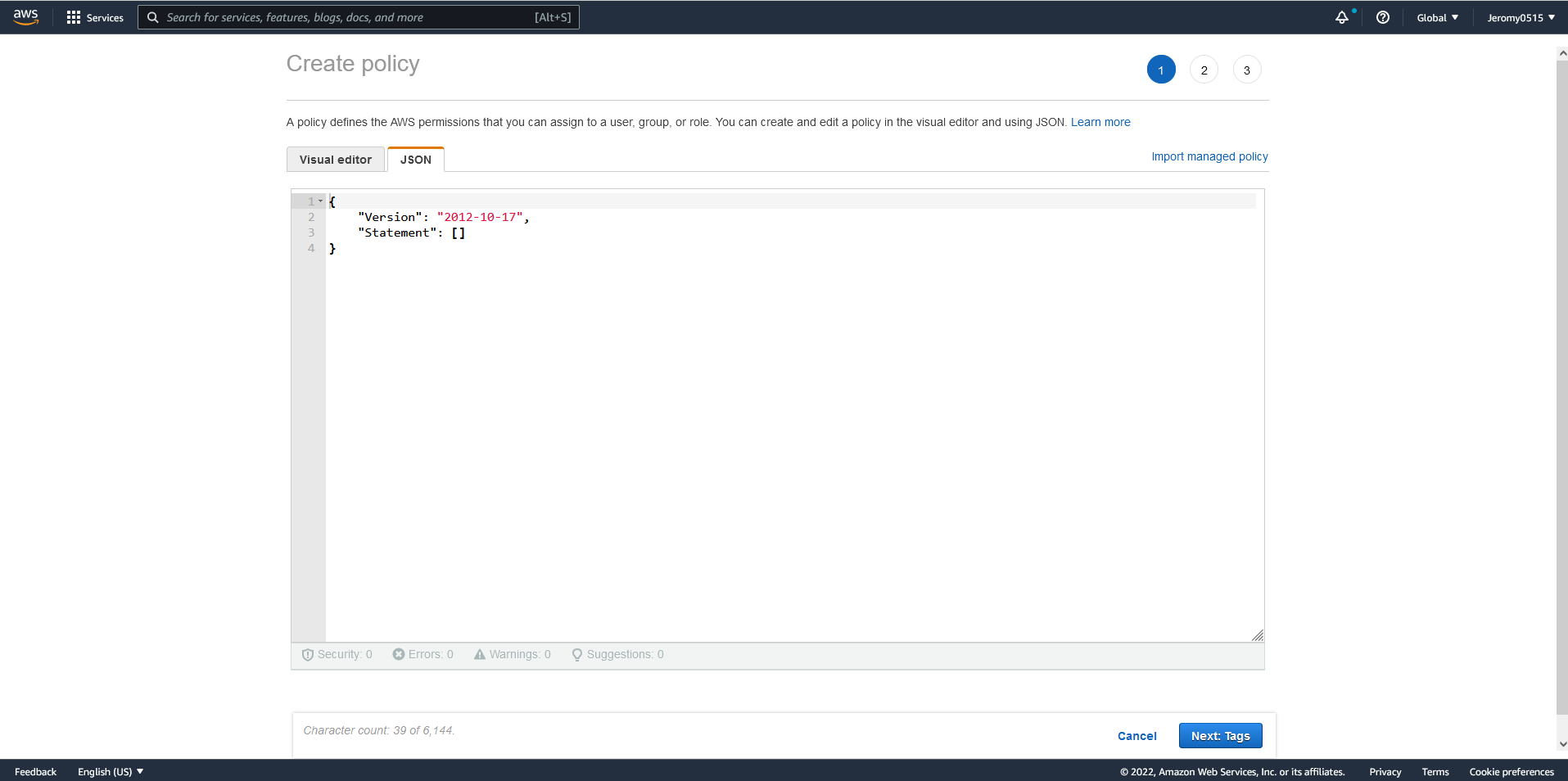 4. IAM editor에 다음과 같은 코드를 입력해줍니다.