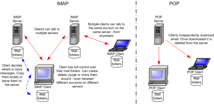 - POP3 방식으로 이메일을 수신한 경우 메일을 다운로드 받은 로컬 PC에만 해당 메일이 남아있게 되어 추가적인 설정을 하지 않는 이상 다른 PC나 모바일 등의 기기로 동일한 이메일을 확인할 수 없고, 별도 설정 없이 로컬 PC에서 메일을 삭제한 경우 서버에서 해당 메일을 확인할 수 없다는 단점이 존재
