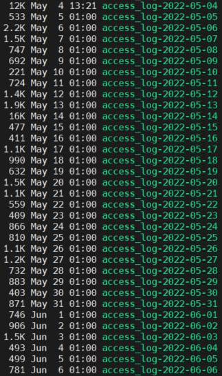 이런식으로 설정한 명령어에 따라 매일 새로운 파일에 로그가 쌓이게 됩니다.