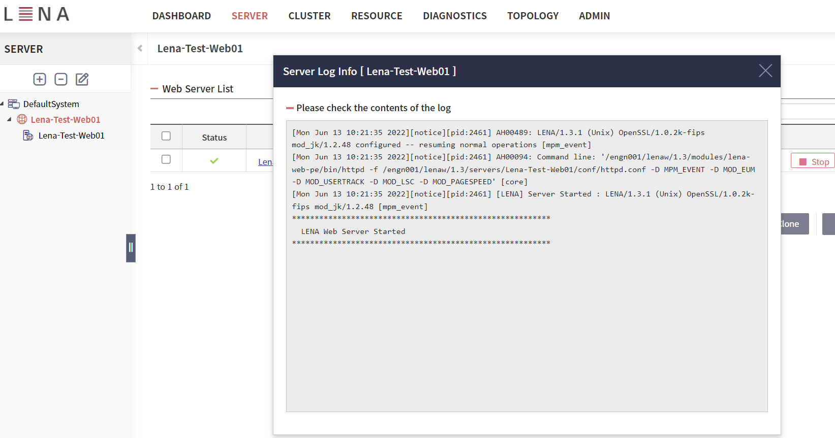 5. LENA Manager 접속 후 상단에 Server 클릭 후, 하단에 Register를 클릭 해 Web Node를 등록합니다.