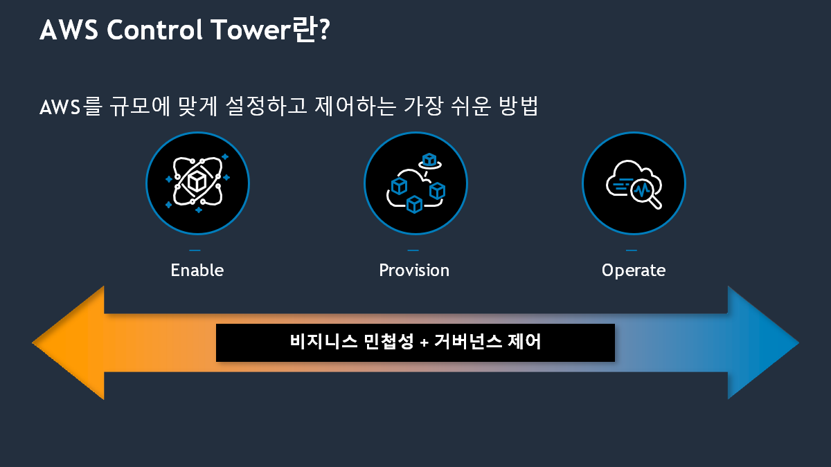 - 컨트롤 타워는 Organization, IAM, Config, CloudTrail, Service Catalog 등 여러 서비스를 기반으로 한다.