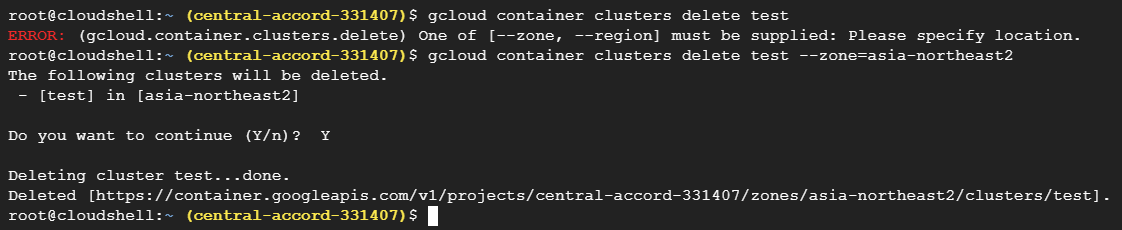 클러스터에서 생성된 외부 부하 분산기, 클러스터에서 생성된 내부 부하 분산기, 영구 디스크 볼륨은 삭제되지 않을 수도 있습니다.