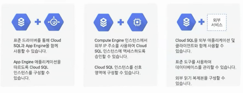 - 다른 GCP 서비스와 함께 사용 가능한 Cloud SQL