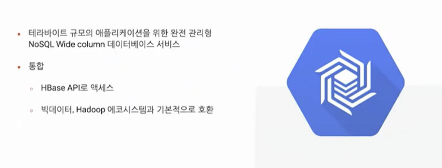 - 관리형 NoSQL Cloud Bigtable