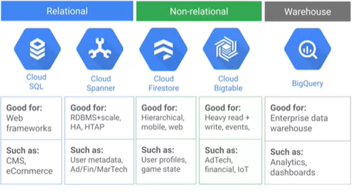 - Cloud SQL , Cloud Spanner