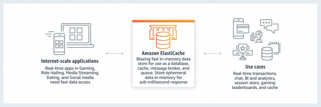 Amazon ElastiCache는 유연한 실시간의 유스케이스를 서포트하는 풀 매니지드의 인메모리 캐싱 서비스로, Memcached 또는Redis 프로토콜에 호환성이 있습니다.